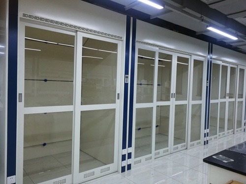 (1)释放功能:应具备将通风柜内部产生的有害气体用吸收柜外气体的方式,使其稀释后排至室外的机构。