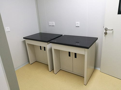 1.材 料:采用加厚大理石台面40mm,内置钢制框架支持。大理石放射性能满足国家标准对室内装饰的要求,大理石台面下衬双重精密水平调节螺杆及防振垫,整体要求牢固、光滑美观、防震良好。
